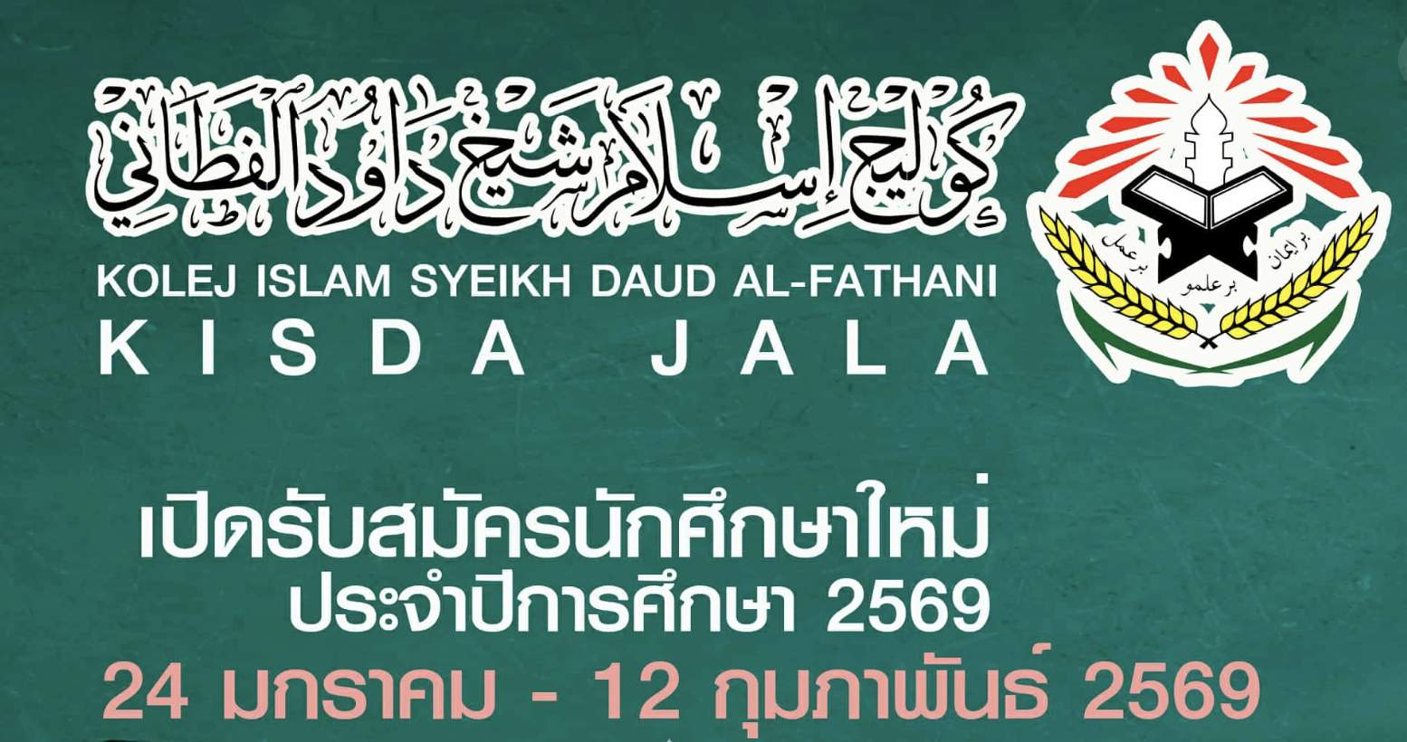 جيسدا. جامعة إسلام شيخ داود الفطاني الإسلامي جالا،مڠاداكن فيستا مڠيڠاتي هاري كبساران إسلام، يڠ بر لڠسوڠ فدا تڠگل ١٣~١٤ ديسمبر […]